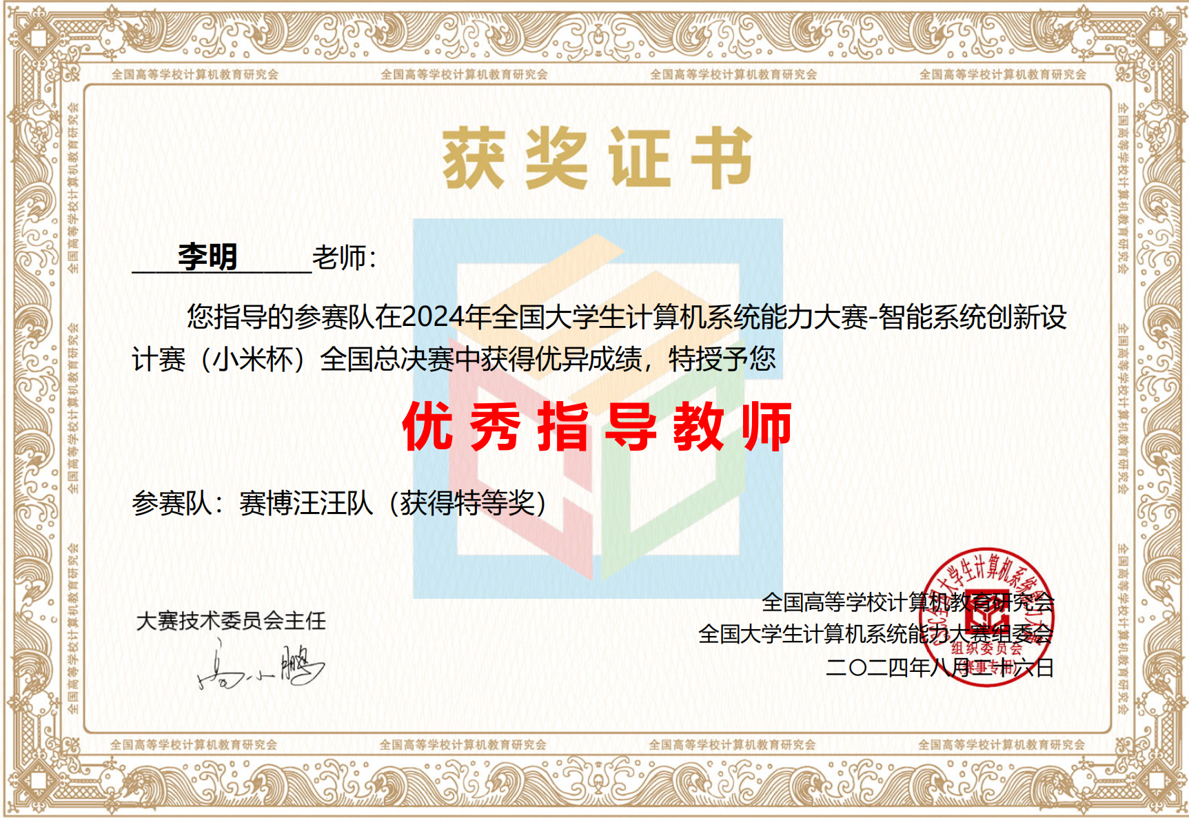 四足机器人比赛特等奖-优秀指导老师
